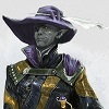 Description: a troll in profile with wavy horns and teal eyes